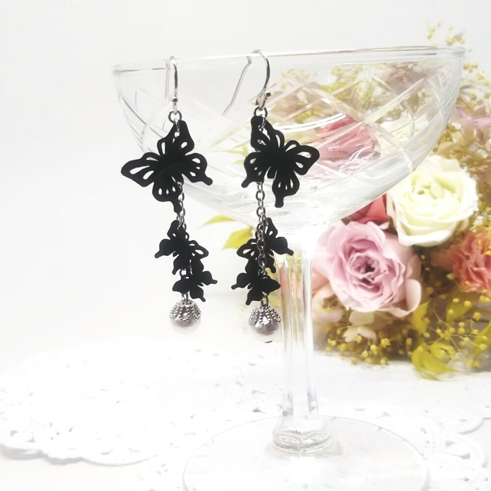 【再販】クロアゲハ Ver.群れ * 切り絵 蝶 ピアス・イヤリング